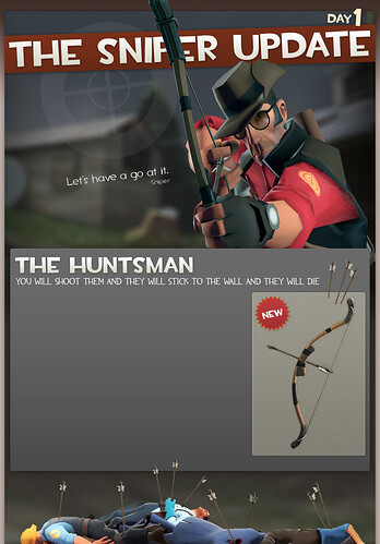 neues update, diesmal neue Waffen für Sniper und Spy, neue Maps, etc.